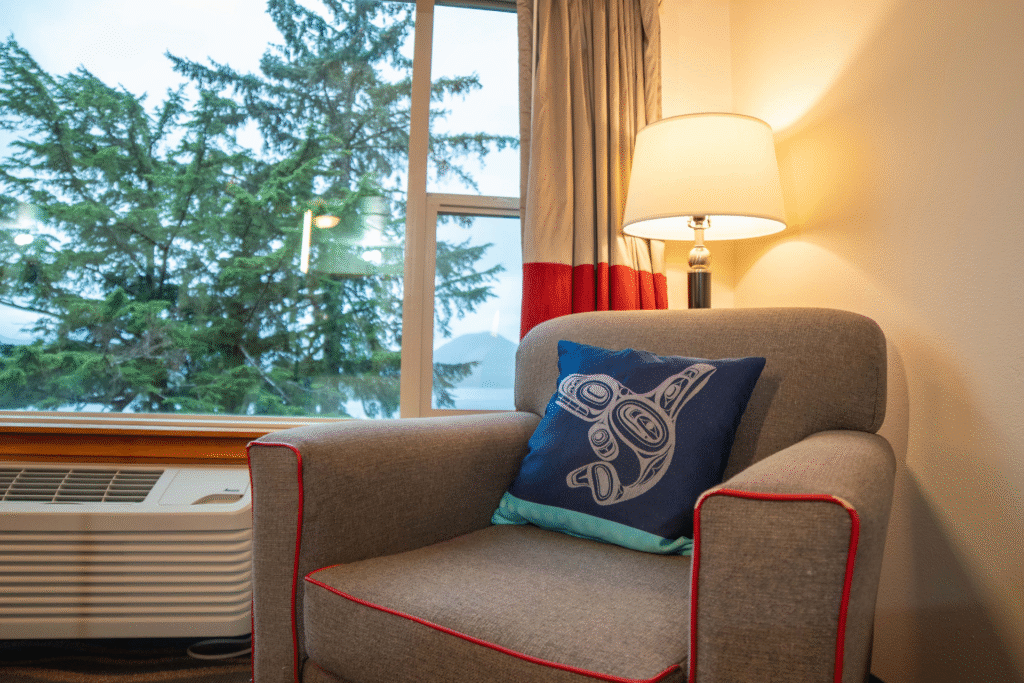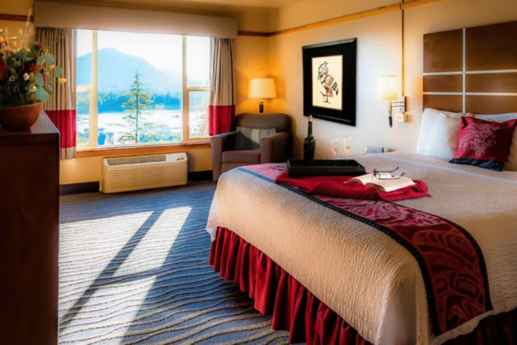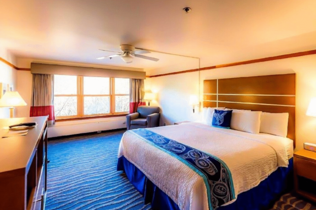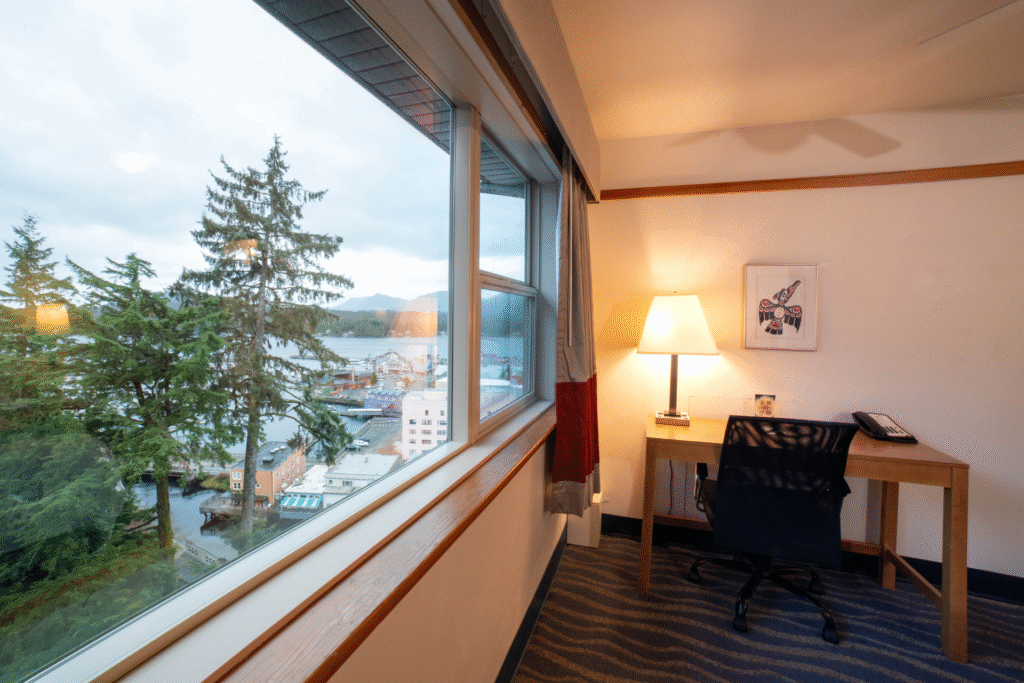 Each guest room features air conditioning—a unique amenity in Ketchikan—along with plush bedding and modern conveniences to ensure a peaceful night’s rest. Whether you’re here to adventure, recharge, or simply take in the view, you’ll find your perfect Alaskan escape waiting.